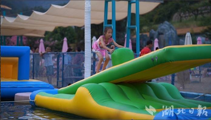 活动现场,随着主持人一声令下,参赛选手们纷纷冲向赛道。 闯关赛道设有摇摆不定的浮桥、高速旋转的滚轮、湿滑陡峭的水坡等趣味关卡,既考验平衡力与反应速度,又充满欢乐刺激。不少家庭组队参与,亲子互动其乐融融。 “我们是从十堰过来的,在抖音上看到瑶池仙境,听说这里很好玩,然后周末带孩子过来一起玩,这里的水上项目很好,点个赞!”游客朱洋军开心地说道。 据水上乐园负责人介绍,该项目自今年6月推出以来,日均接待游客200余人,周末更是人气爆棚。